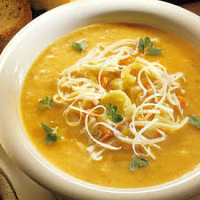 تقدم الشوربة مع شرائح الخبز الفرنسي المحمصة